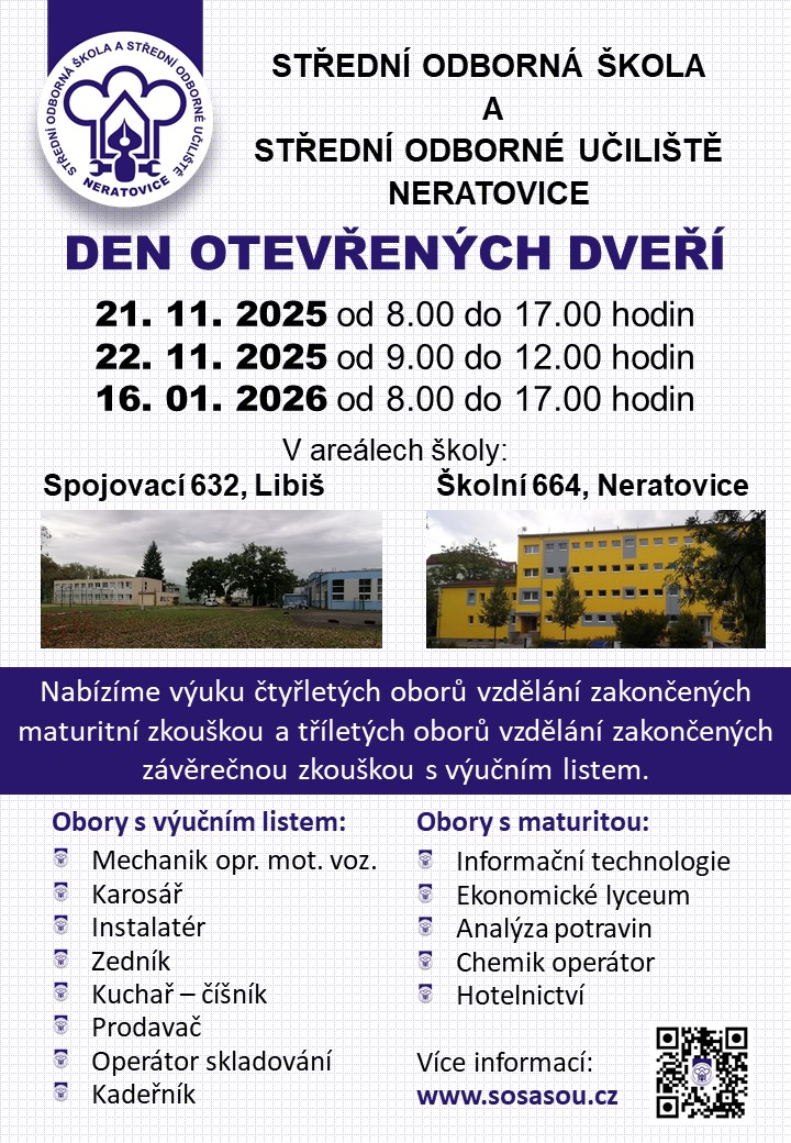 Upozorňujeme, že obory informační technologie a ekonomické lyceum se nachází v areálu SOŠ na adrese Školní 664, Neratovice