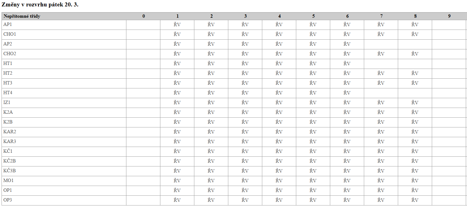 Z organizačních důvodů stanovila ředitelka školy na den 20. 3. 2026 ředitelské volno pro žáky vybraných tříd.