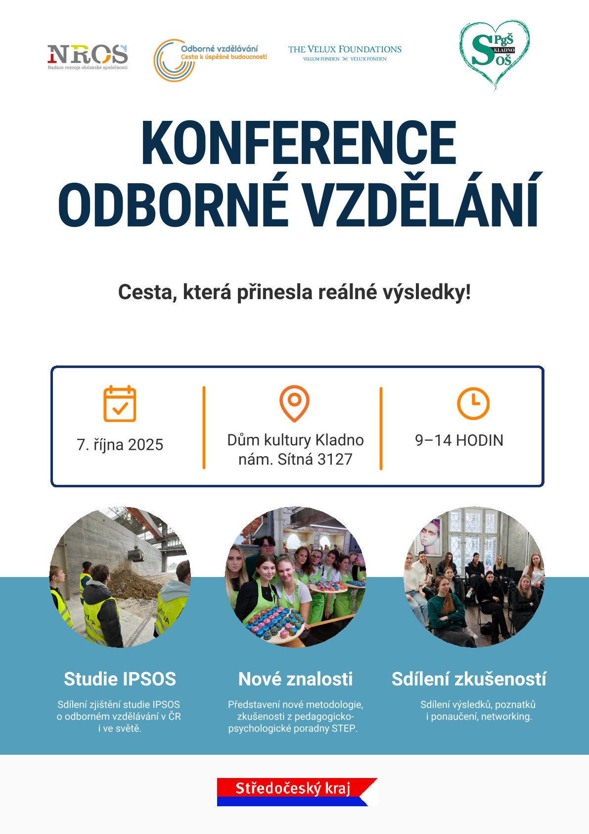 V rámci ukončení projektu "Odborné vzdělání - cesta k úspěšné budoucnosti" NROS - Nadace rozvoje občanské společnosti proběhne níže uvedená akce. Stále je možnost se přihlásit a tím se i zúčastnit.