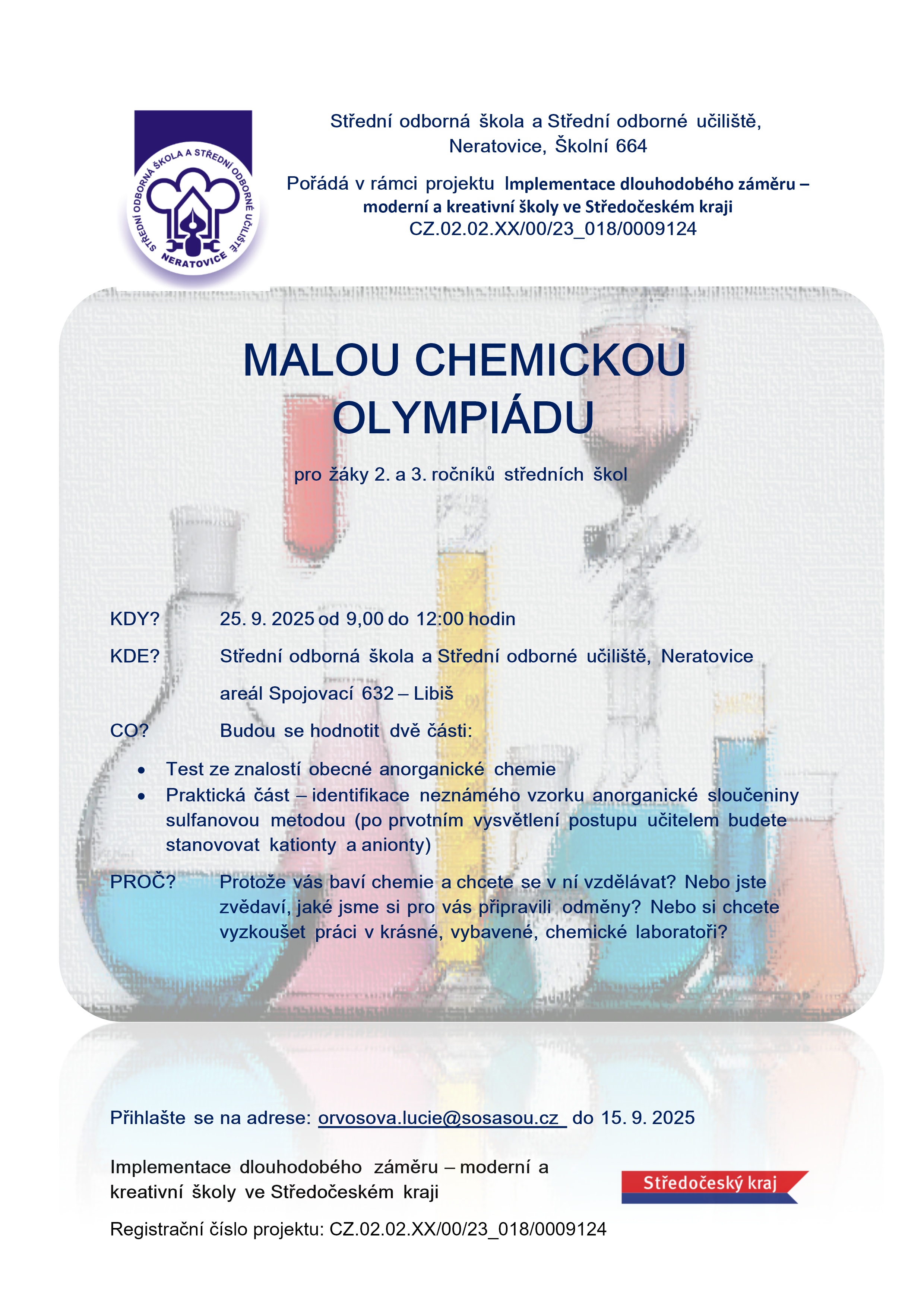 25. 9. 2025 od 9.00 hodin v areálu SOU proběhne "Malá chemická olympiáda" pro žáky SŠ