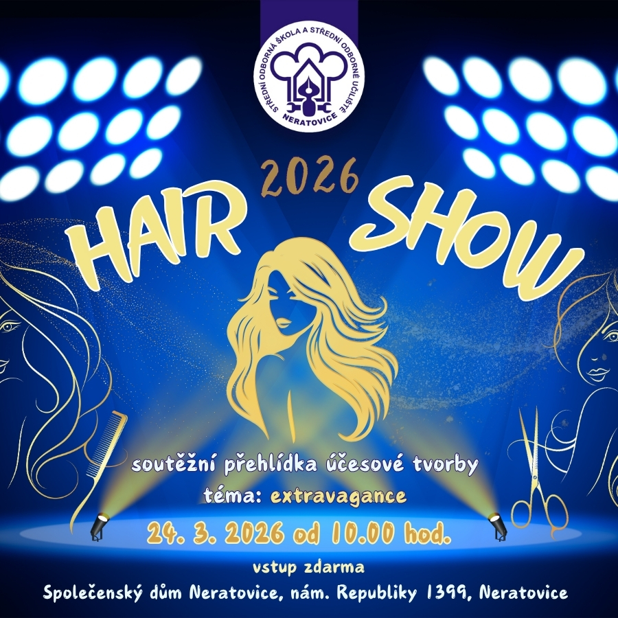 24. 3. 2026 se v Společenský dům Neratovice koná kadeřnická soutěž "Hair show Neratovice 2026".